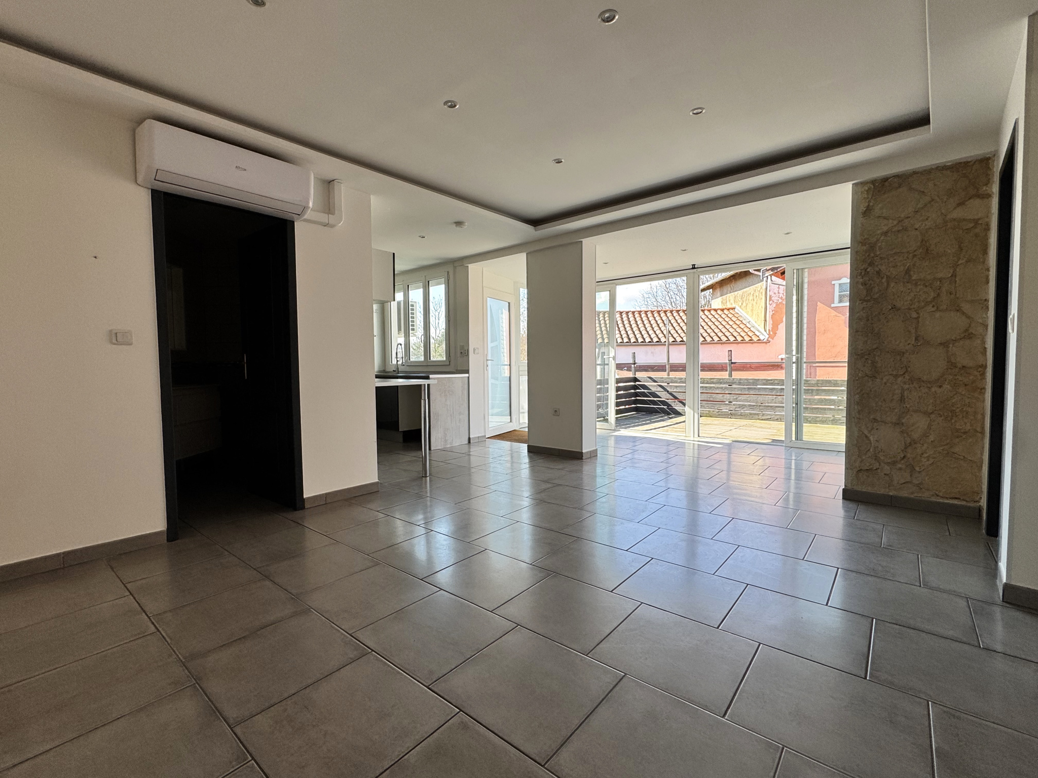 Dans une petite copropriété conviviale, venez découvrir ce bel appartement de type 3, situé au premier et dernier étage, offrant calme et intimité. Il se compose d’une spacieuse pièce de vie de 35 m² avec cuisine entièrement équipée, idéale pour recevoir, ouvrant sur une agréable terrasse de 17 m², parfaite pour profiter des beaux jours. L’espace nuit comprend deux chambres, ainsi qu’une salle d’eau fonctionnelle. Le chauffage par climatisation réversible assure un confort optimal toute l’année. Les informations sur les risques auxquels ce bien est exposé sont disponibles sur le site Géorisques http://www.georisques.gouv.fr Vous apprécierez également la possibilité de stationnement pour deux-roues. Aucun travaux à prévoir : l’appartement est en excellent état et prêt à être habité.