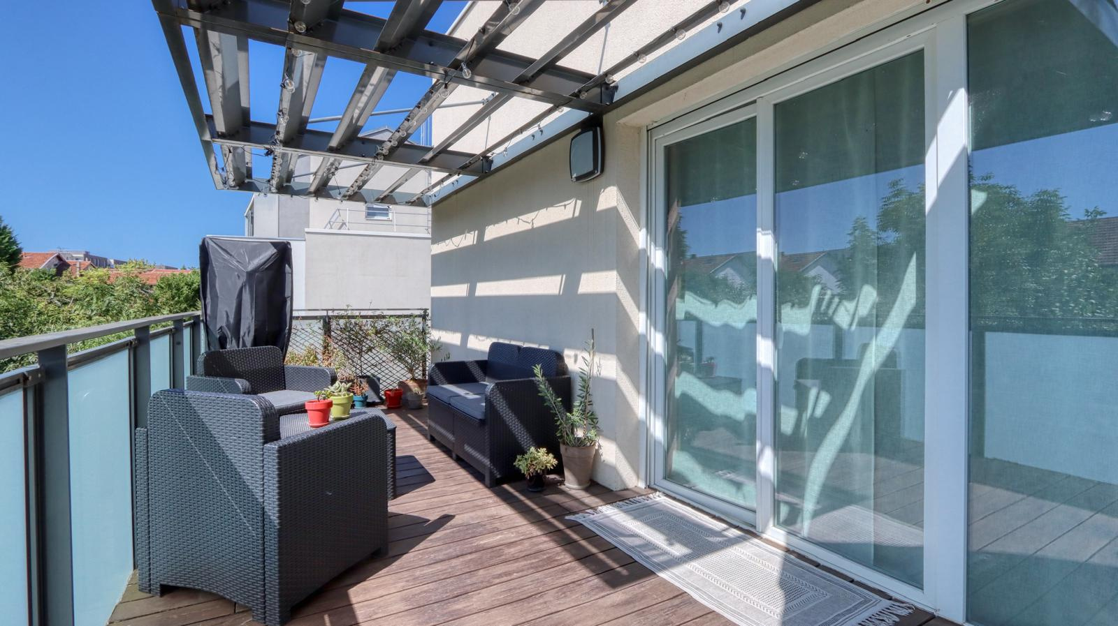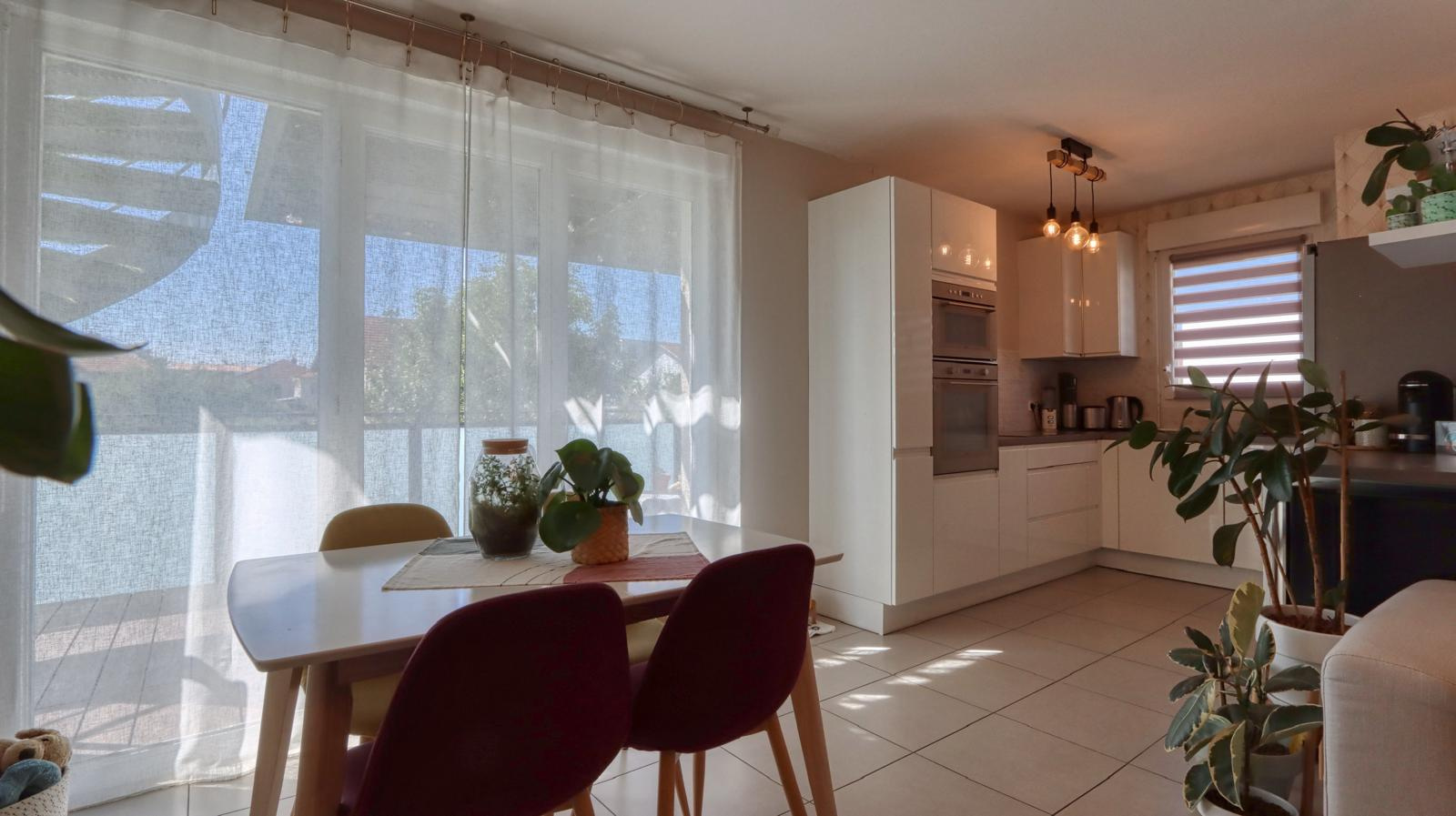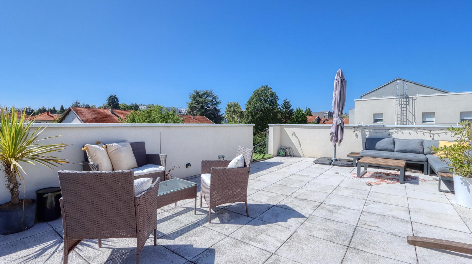 Situé au dernier étage d’une copropriété récente, venez découvrir ce bel appartement T4 de 77 m² offrant un cadre de vie lumineux et agréable. Il se compose d’une belle pièce de vie avec cuisine équipée, ouverte sur une première terrasse d’environ 17 m², idéale pour profiter des beaux jours. L’espace nuit comprend trois chambres, une salle de bains ainsi que des rangements. Atout rare : l’appartement bénéficie également d’une magnifique terrasse sur le toit de 48 m² offrant une vue dégagée à 360°, parfaite pour recevoir, se détendre ou aménager un véritable espace extérieur. Confort assuré grâce au chauffage individuel au gaz. Une place de parking privative complète ce bien. Appartement lumineux situé dans une résidence récente et bien entretenue. Les informations sur les risques auxquels ce bien est exposé sont disponibles sur le site Géorisques http://www.georisques.gouv.fr